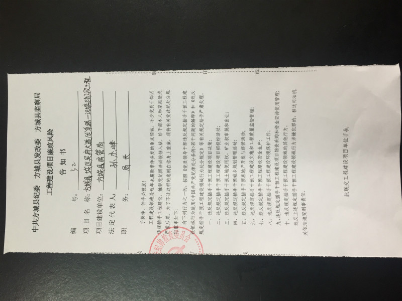 工程建设项目廉政风险告知书
