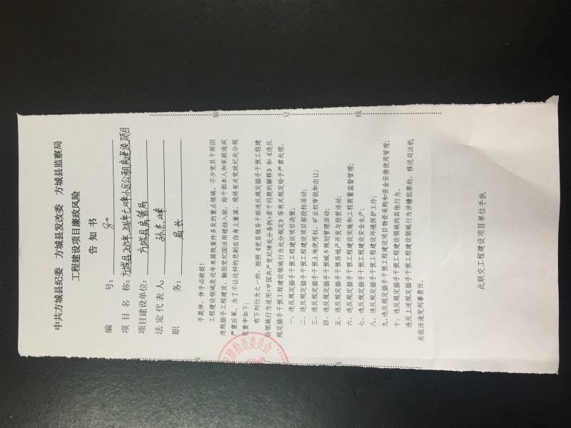 工程建设项目廉政风险告知书